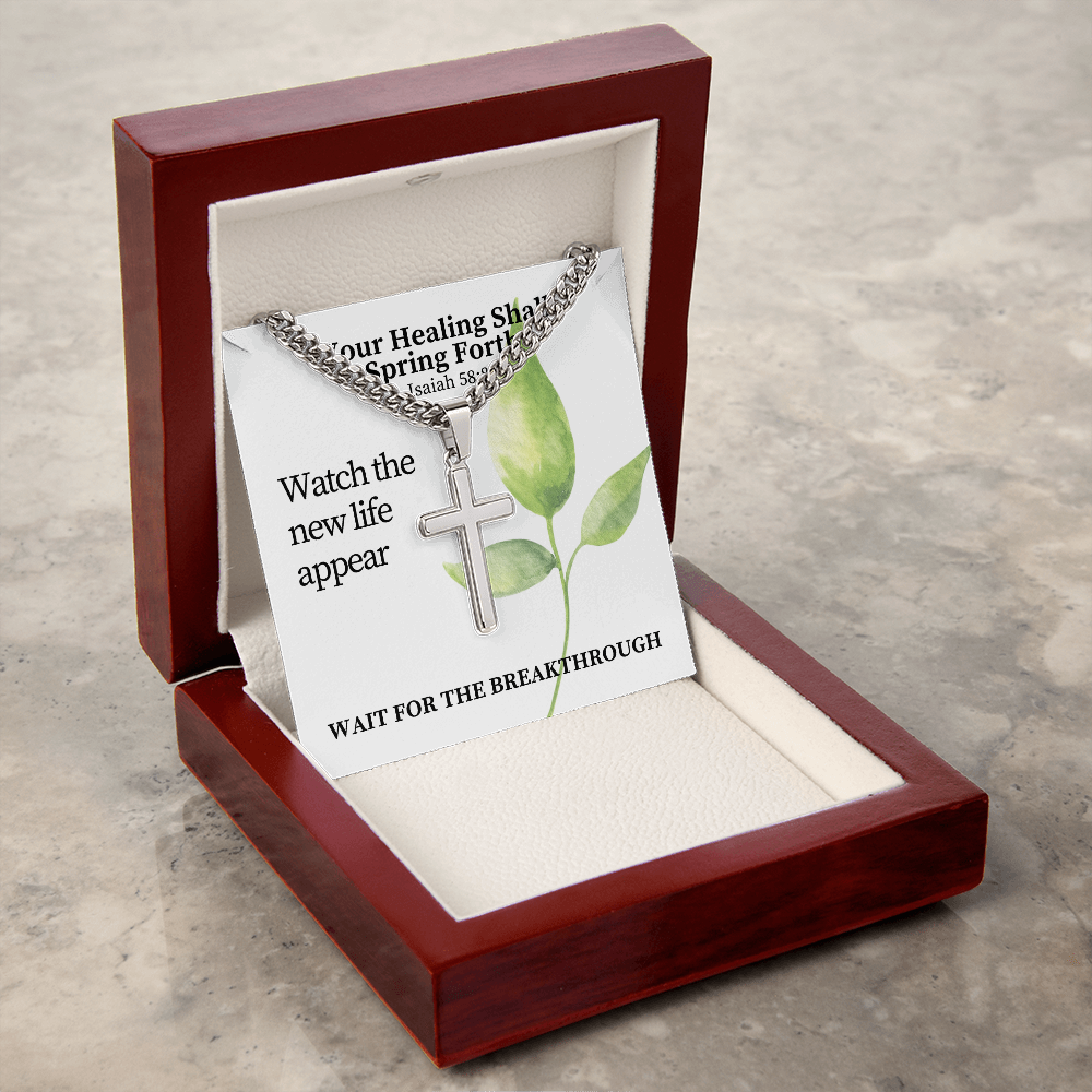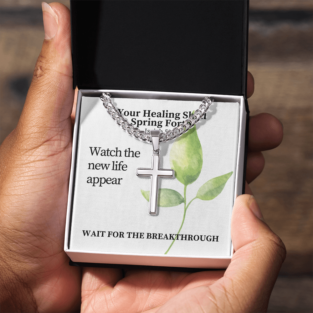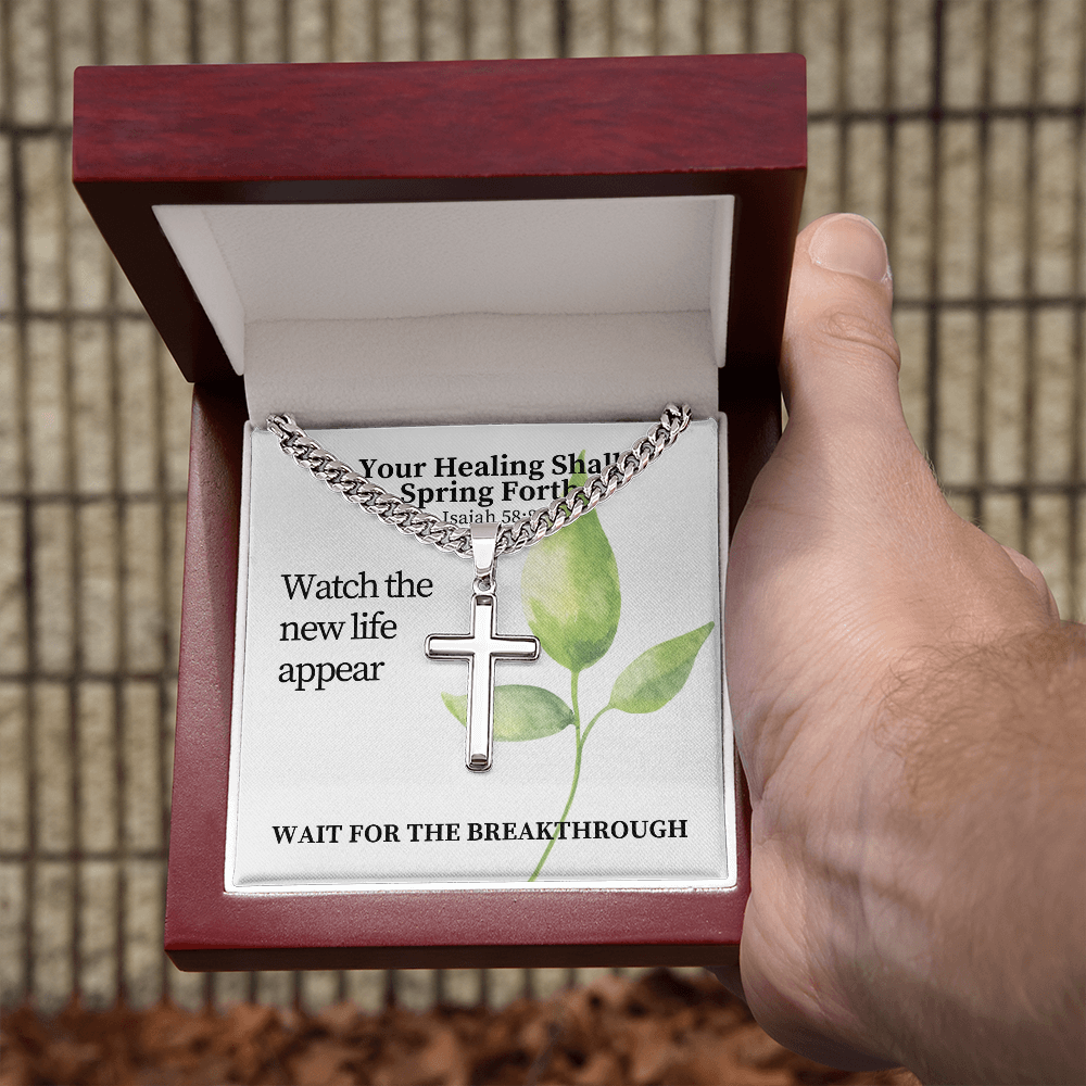 Your Healing Shall Spring Forth (Isaiah 58:8) | Premium Sterling Silver Cuban Link Cross Necklace