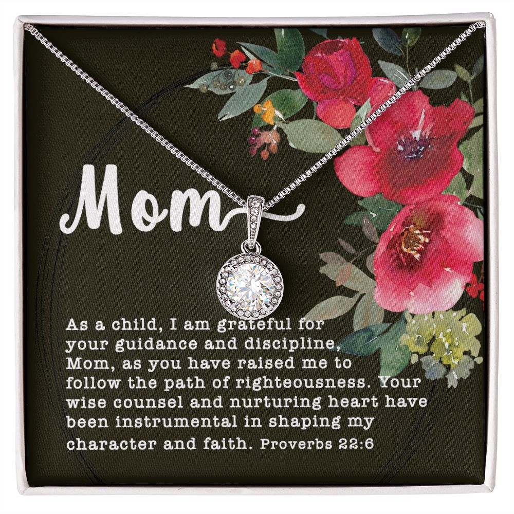 As a child, I am grateful for your guidance and discipline, Mom, as you have raised me to follow the path of righteousness. Your wise counsel and nurturing heart have been instrumental in shaping my character and faith. (Proverbs 22:6)