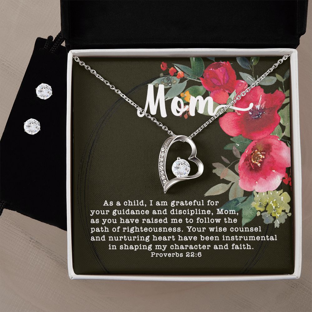Forever Love CZ Crystal 14K White Gold Finish Necklace & Earring ~Proverbs 22:6~