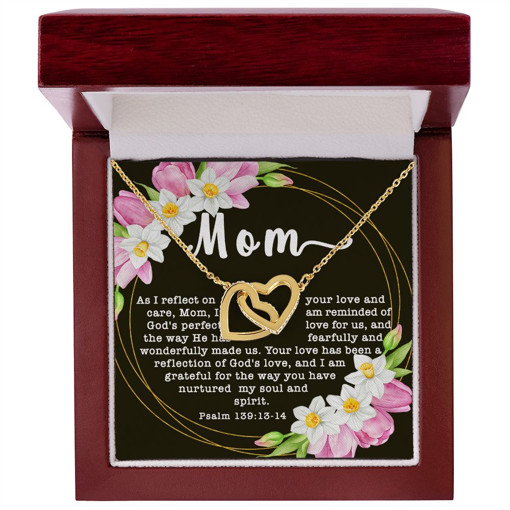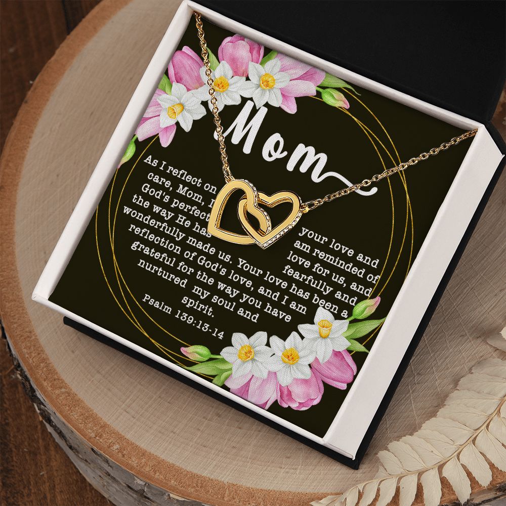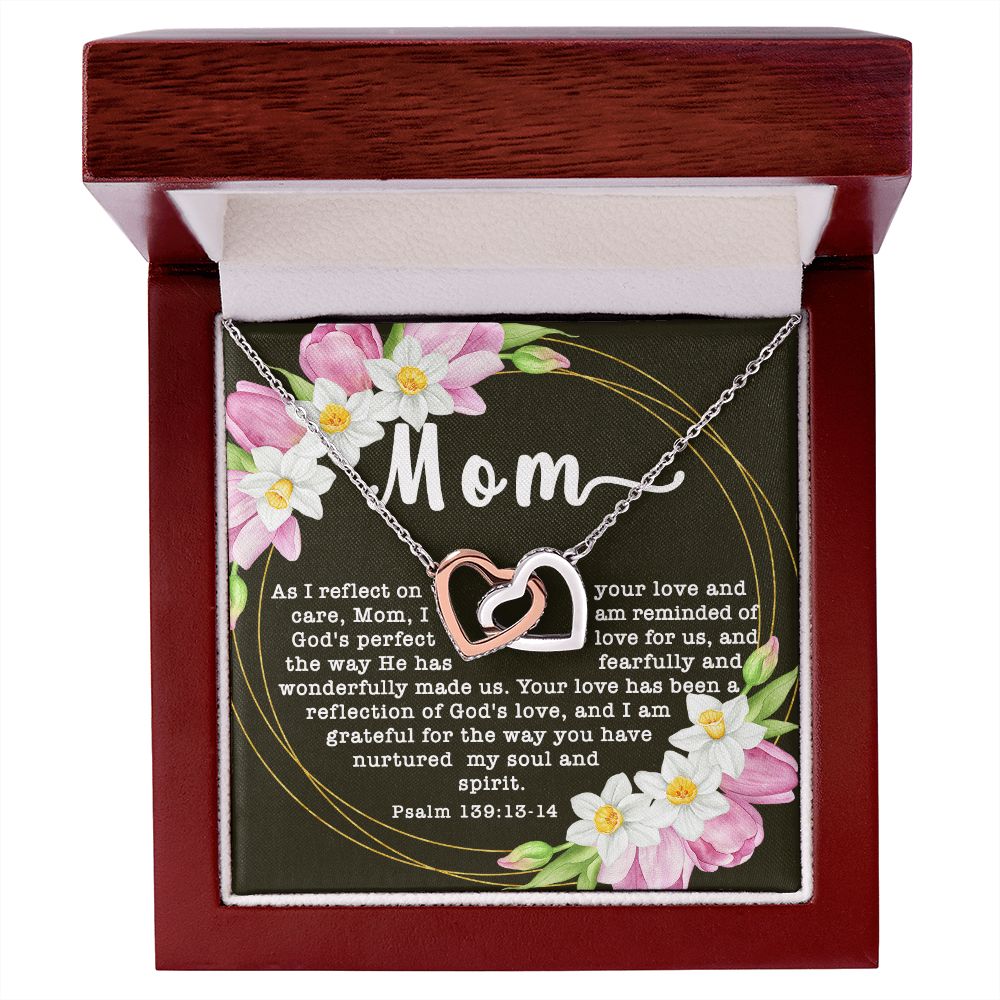 Interlocking Hearts CZ Crystal Rose/18K Gold Finish Necklace ~Psalm 139:13-14~