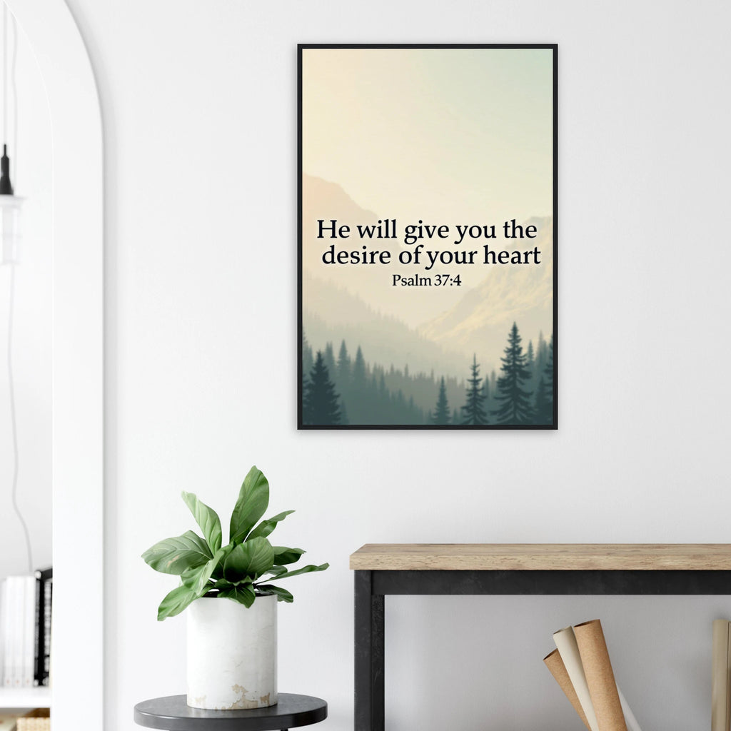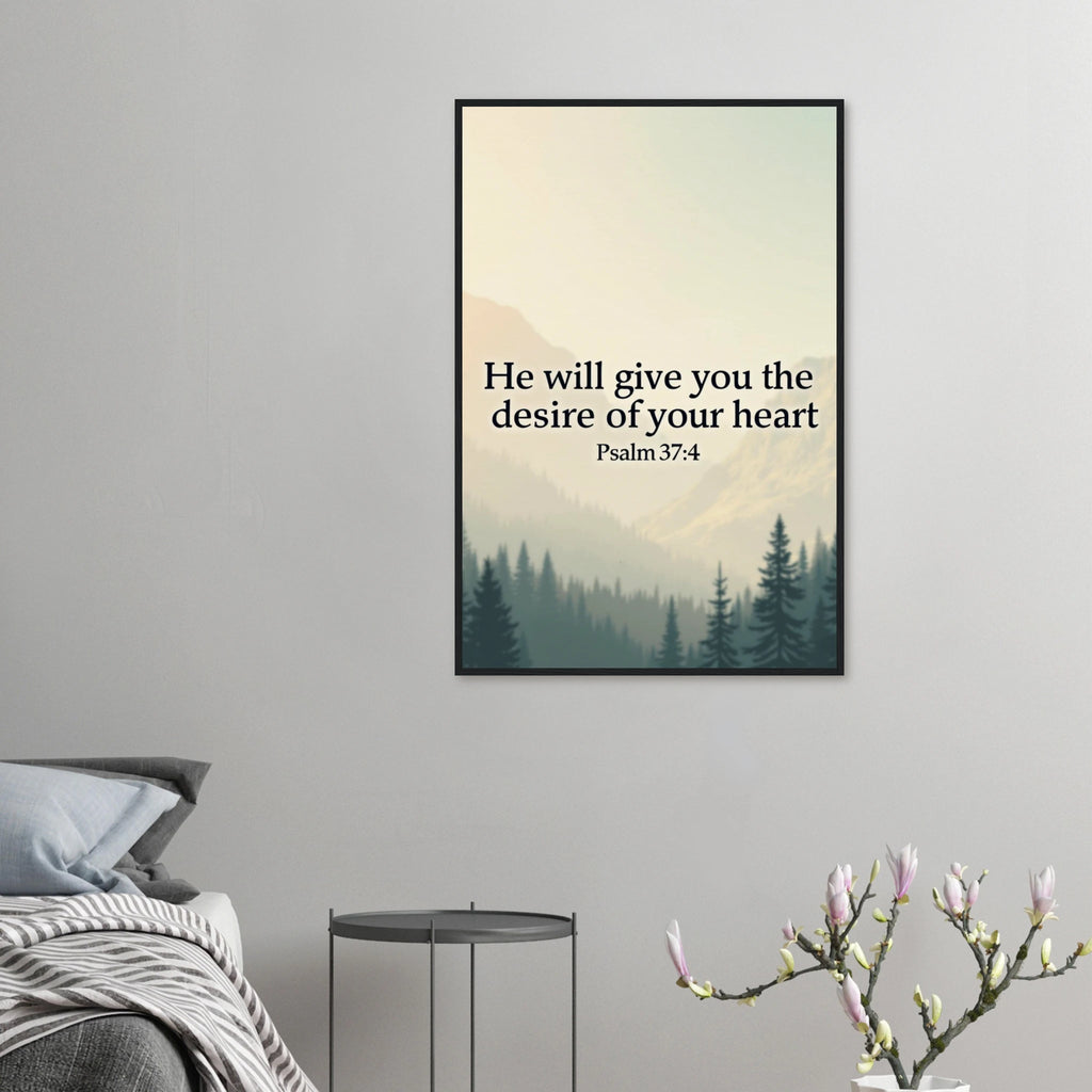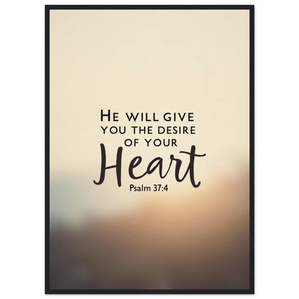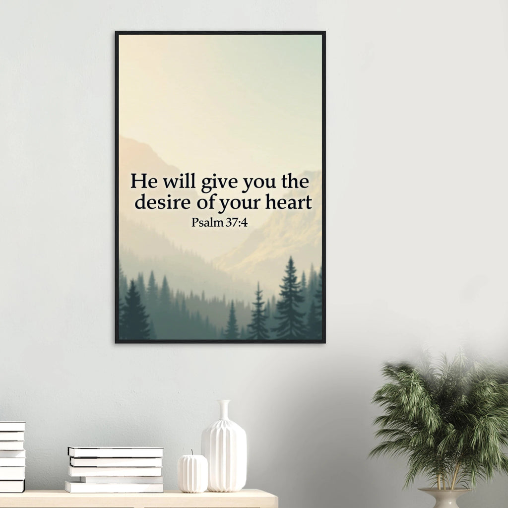 Museum-Quality Framed Poster: He Will Give You The Desire Of Your Heart (Psalm 37:4)