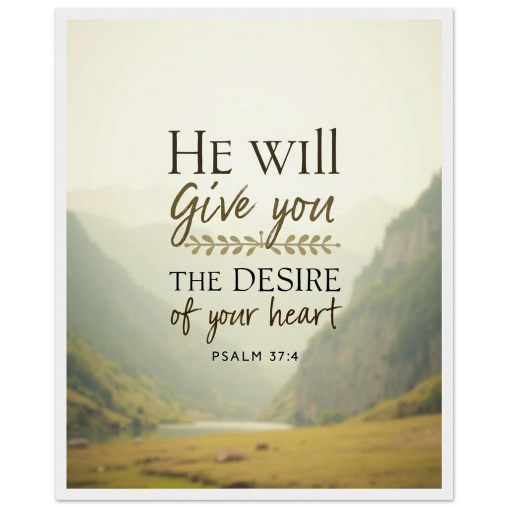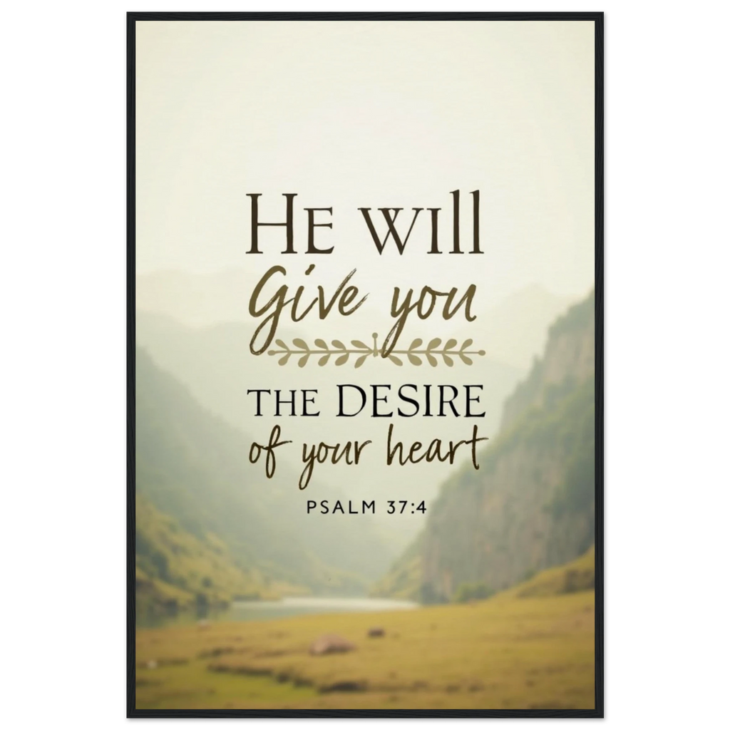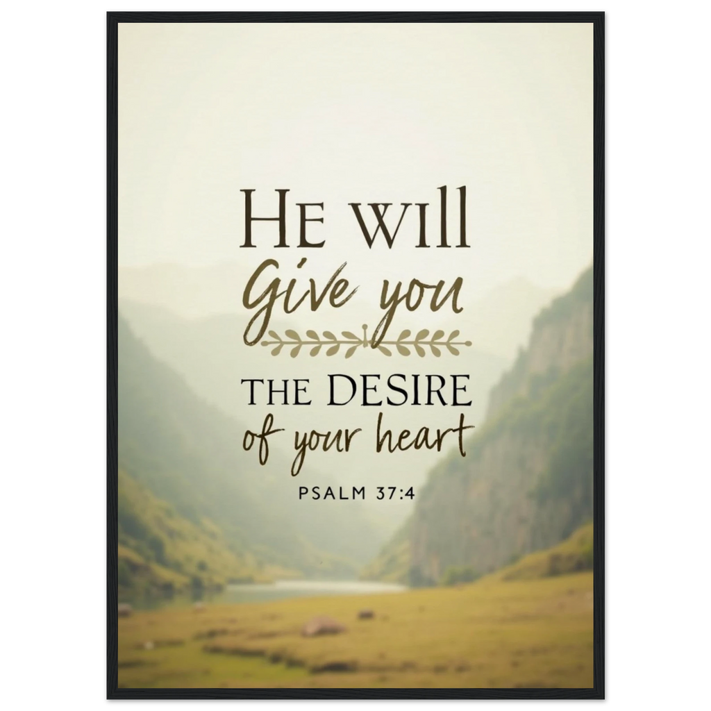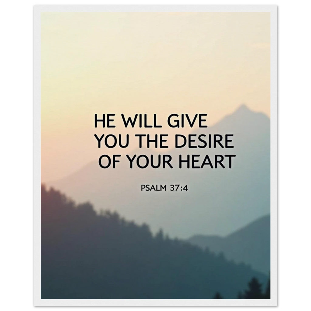 Museum-Quality Framed Poster: He Will Give You The Desire Of Your Heart (Psalm 37:4)