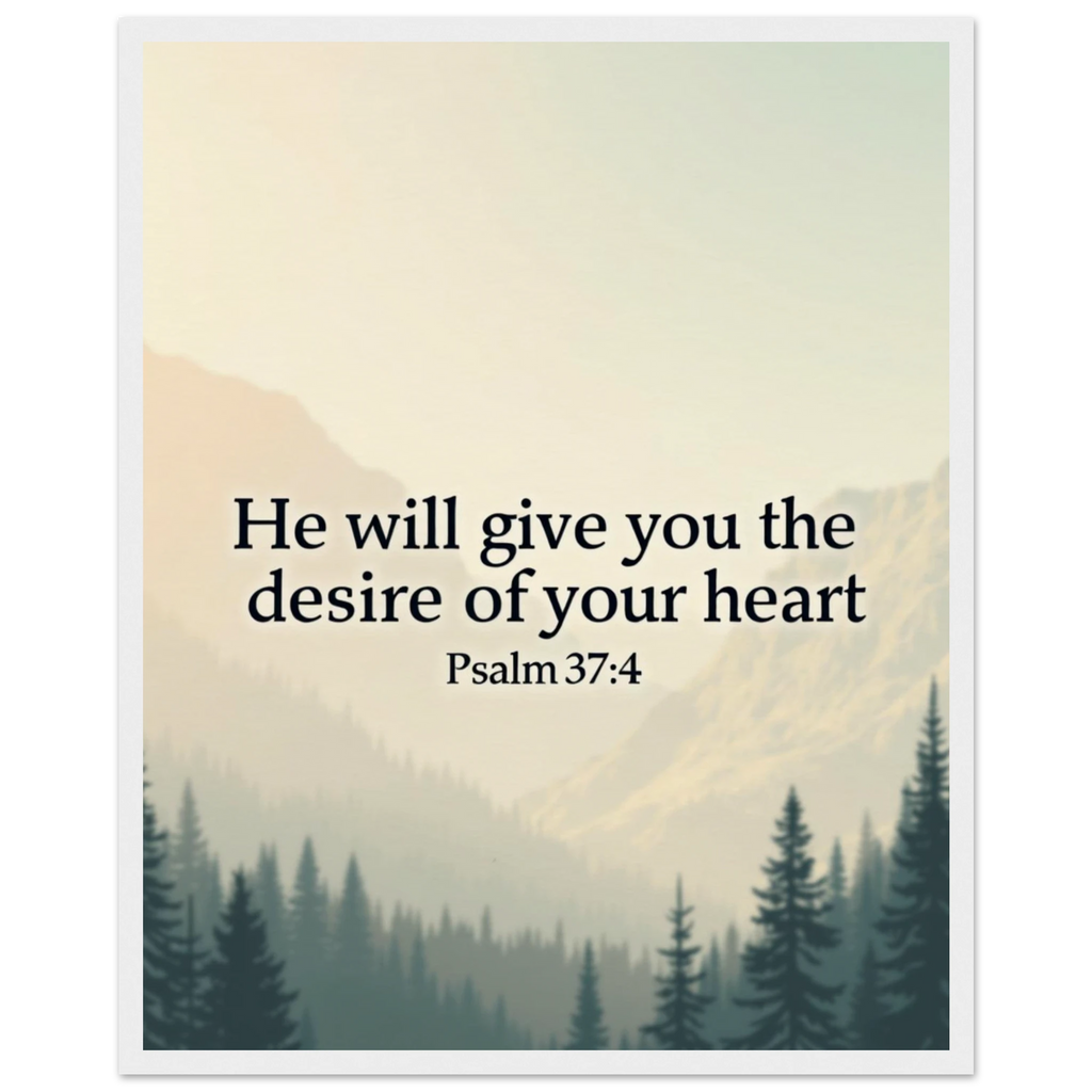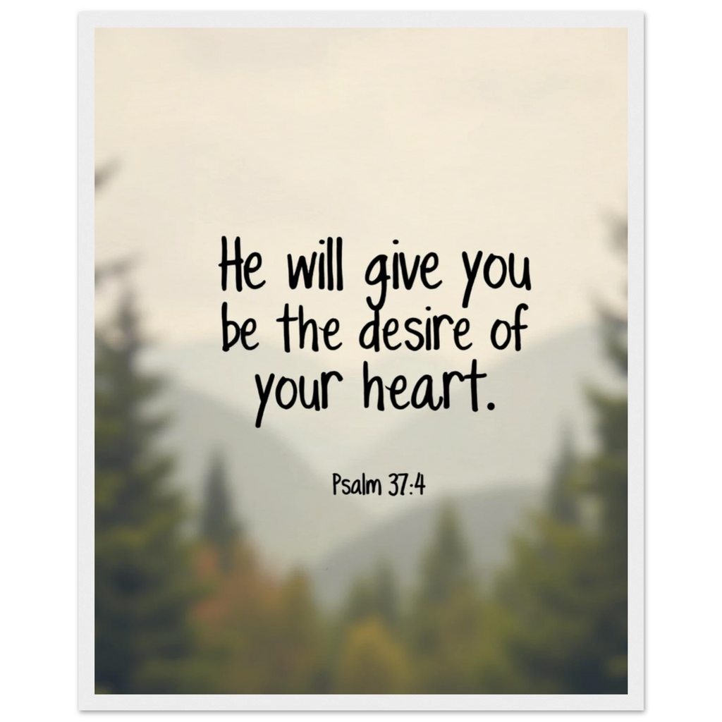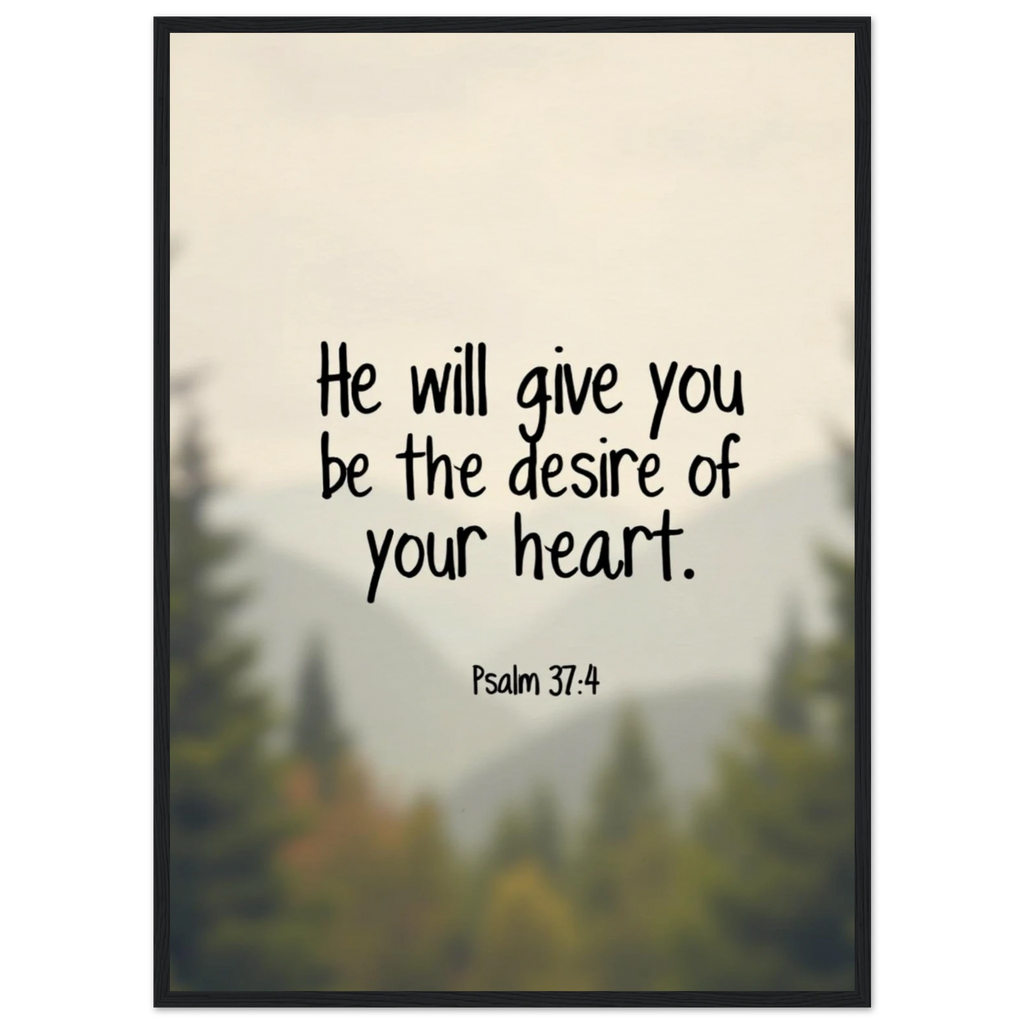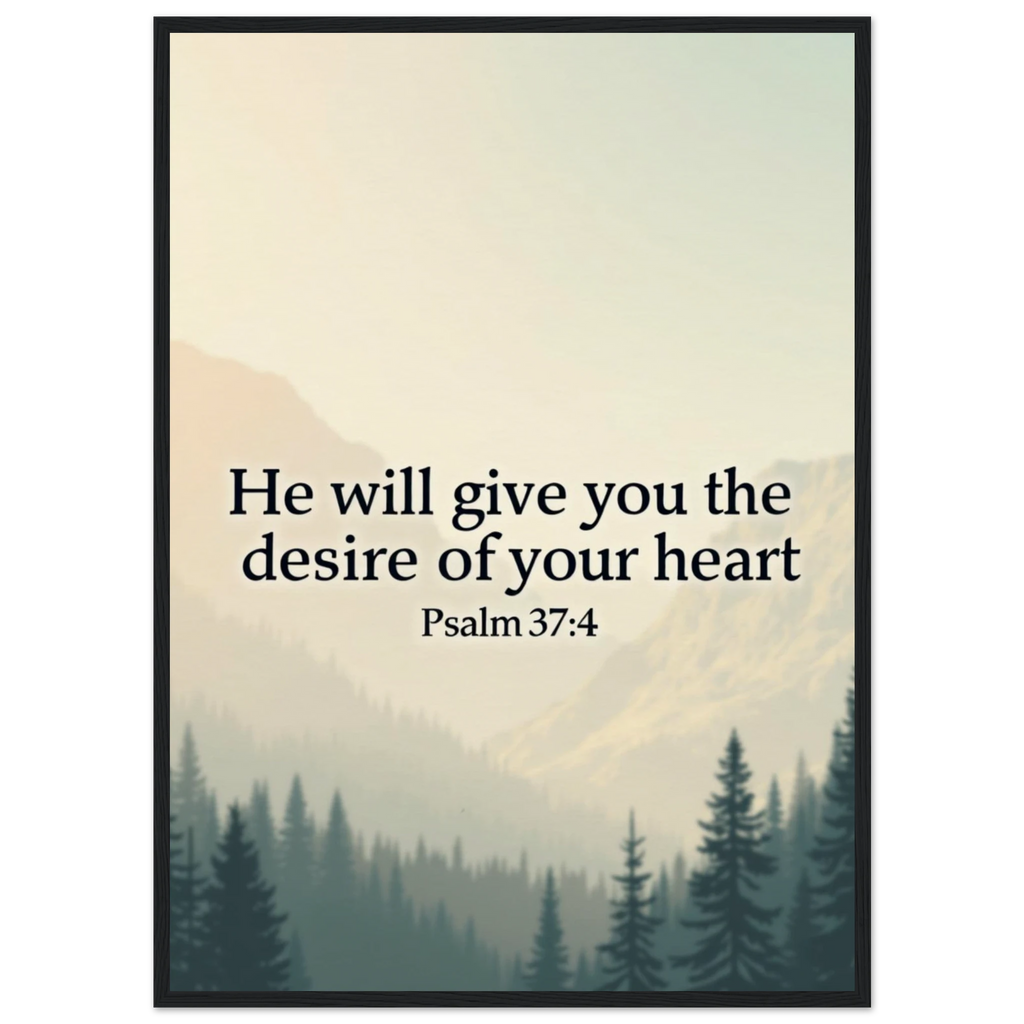 Museum-Quality Framed Poster: He Will Give You The Desire Of Your Heart (Psalm 37:4)