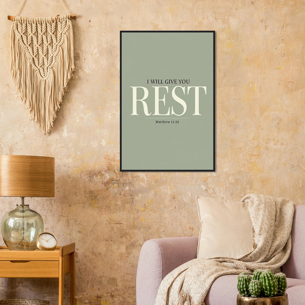 Museum-Quality Framed Poster: I Will Give You Rest (Matthew 11:28)