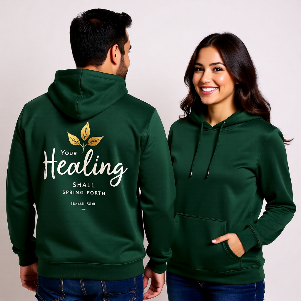 Wrap yourself in tangible comfort and unwavering faith. Our "Healing, Restoration & Divine Strength" hoodie collection is more than just apparel; it's a wearable source of serenity, designed for those who seek comfort for the body and inspiration for the soul. Crafted for your quiet moments of reflection and your active days alike, this hoodie serves as a soft, daily reminder of God's enduring presence.