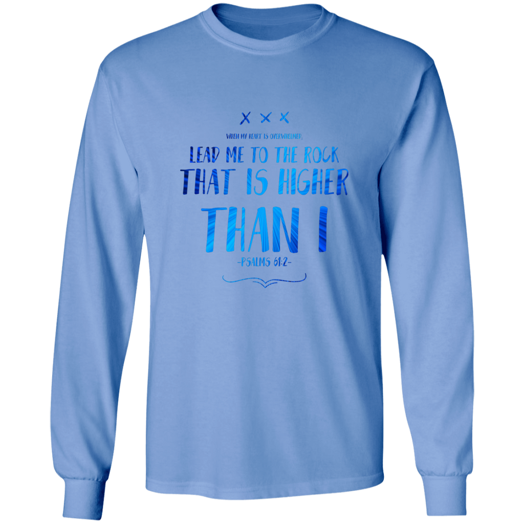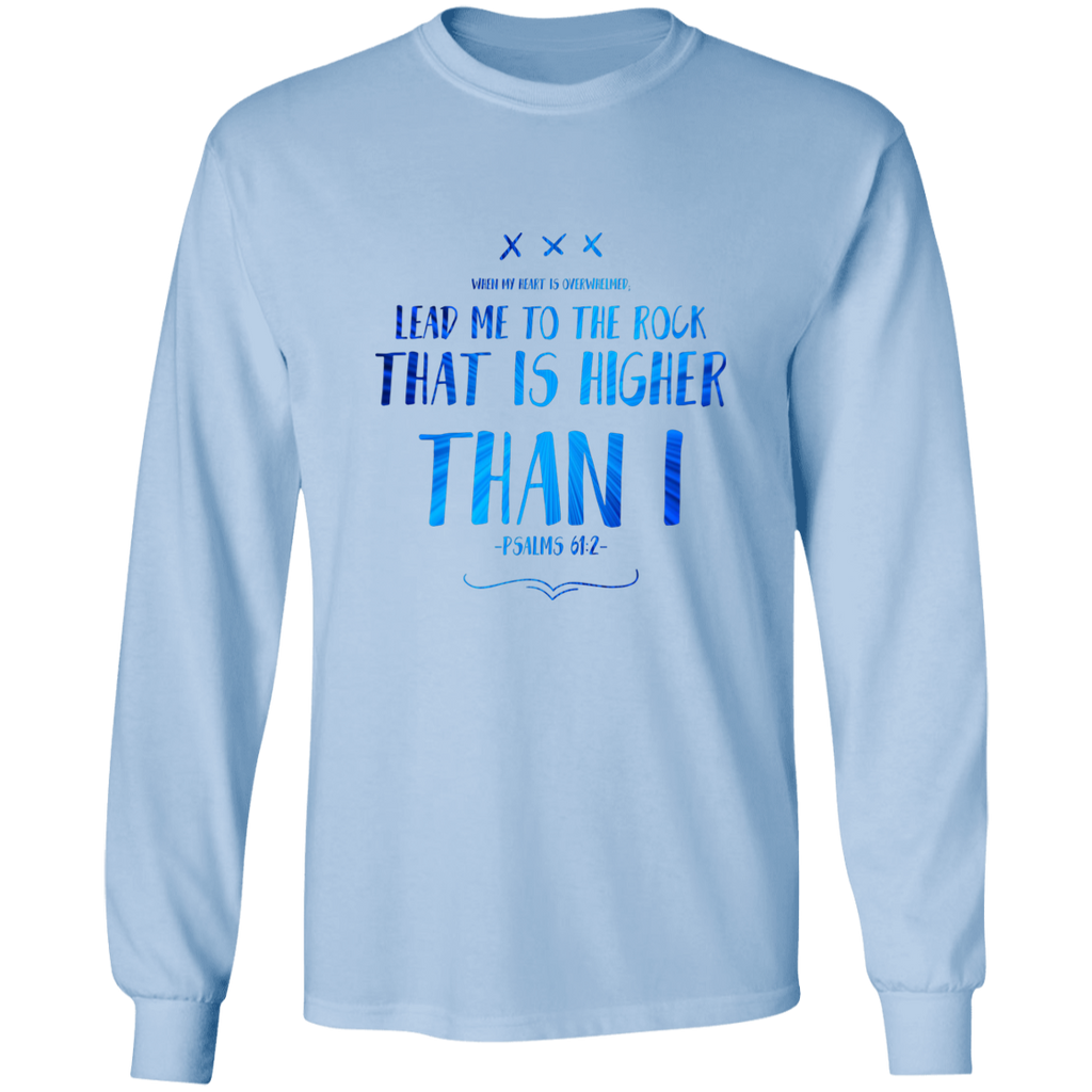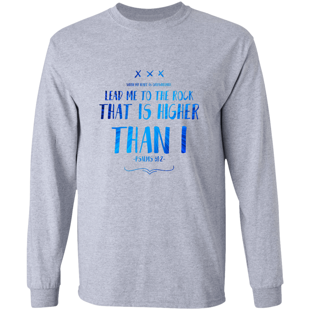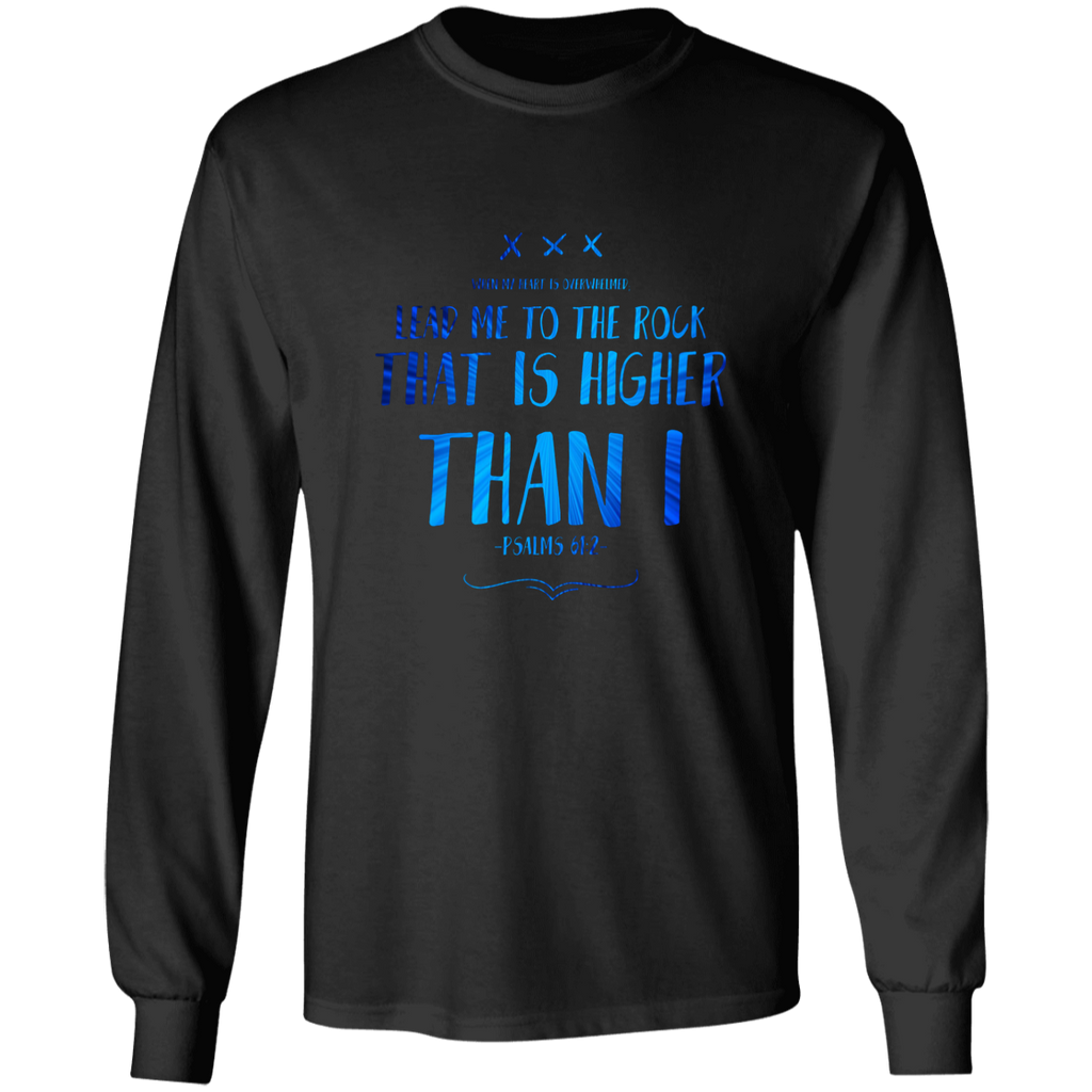 Bible Verse Ladies' Cotton Long Sleeve T-Shirt - Lead Me To The Rock That Is Higher Than I ~Psalms 61:2~ Design 11