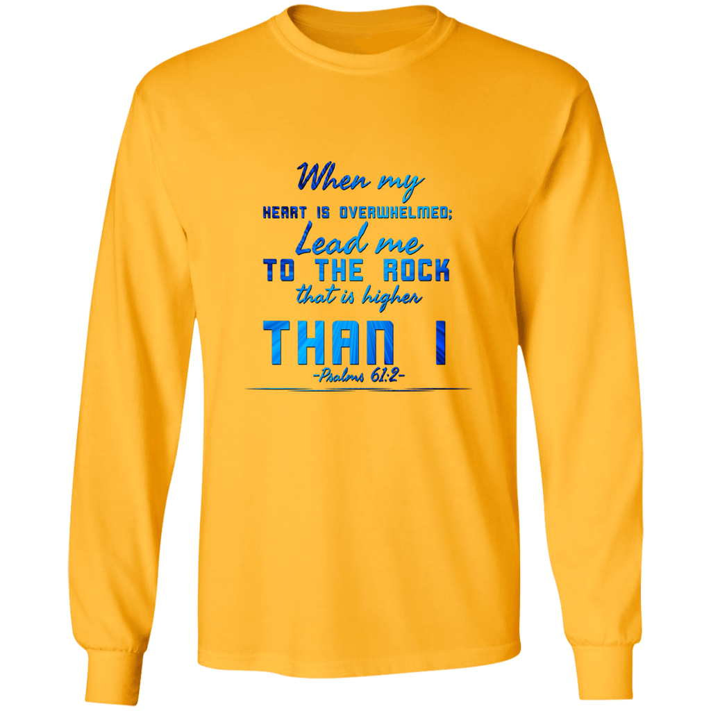 Bible Verse Ladies' Cotton Long Sleeve T-Shirt - Lead Me To The Rock That Is Higher Than I ~Psalms 61:2~ Design 6