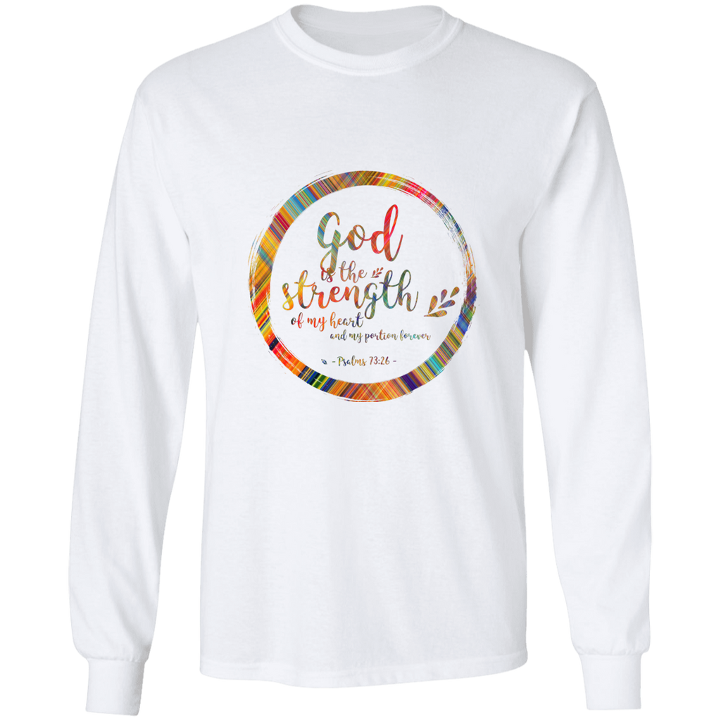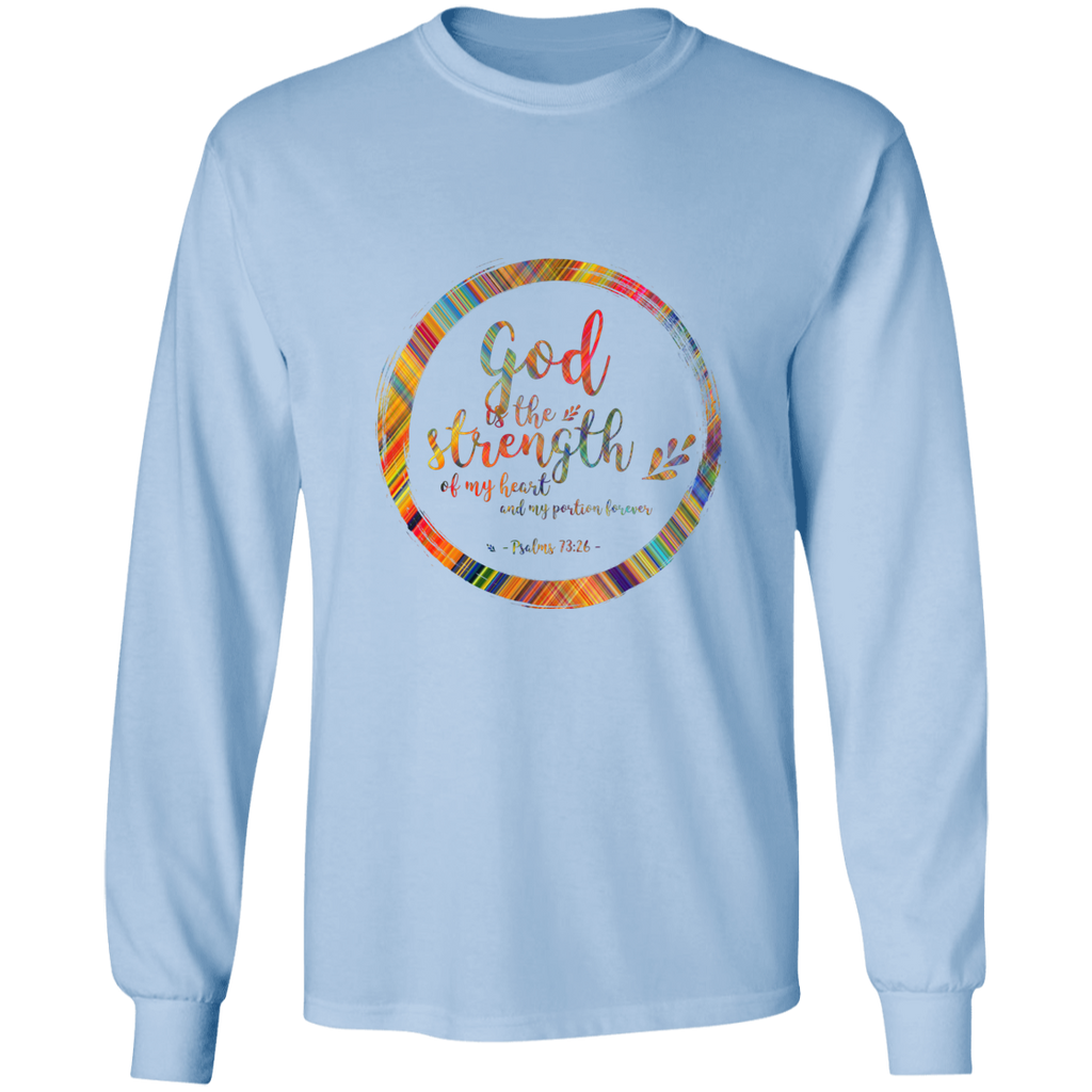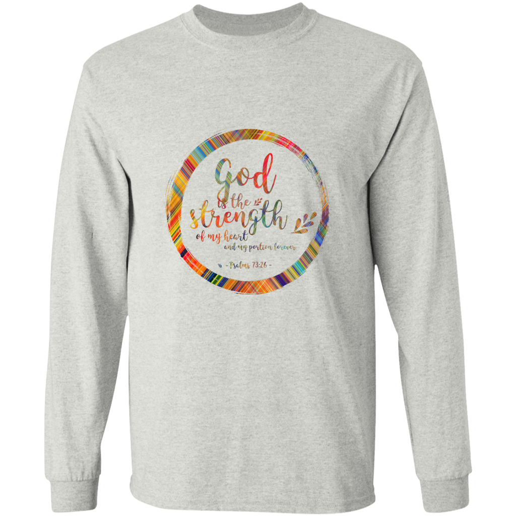 Bible Verse Long Sleeve Ultra Cotton T-Shirt - God Is The Strength Of My Heart ~Psalm 73:26~ Design 9