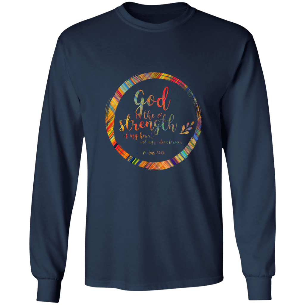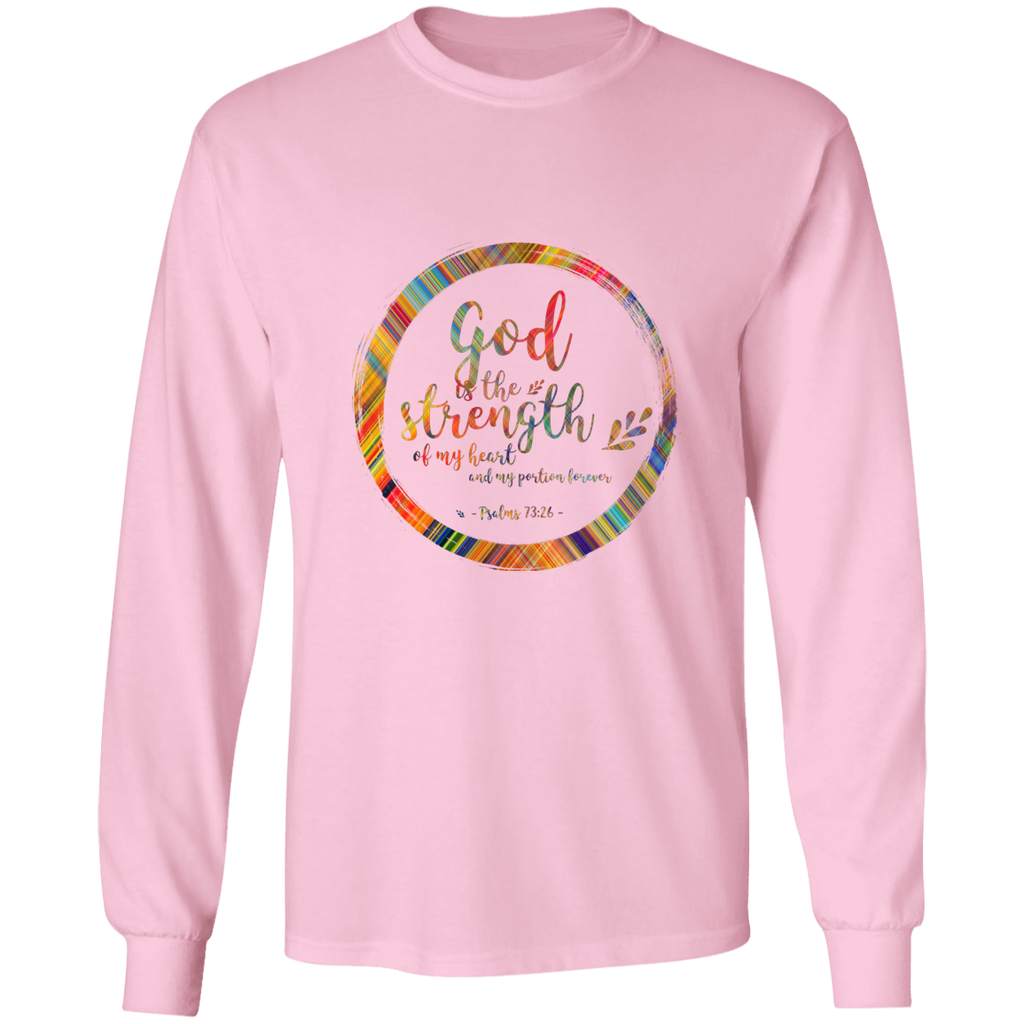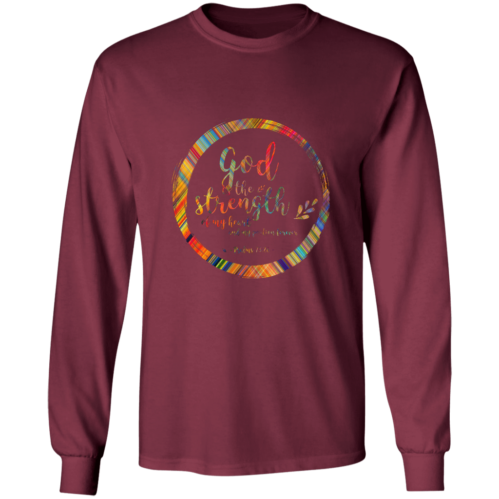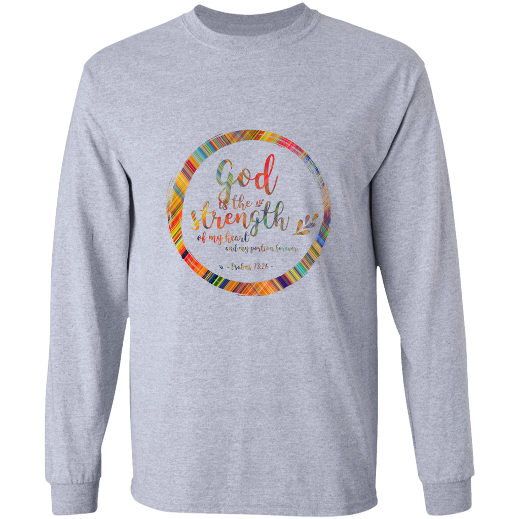 Bible Verse Long Sleeve Ultra Cotton T-Shirt - God Is The Strength Of My Heart ~Psalm 73:26~ Design 9