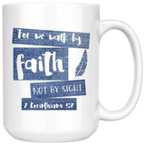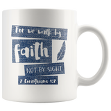 Bible Verses Dishwasher Safe White Mugs - 2 Corinthians 5:7 (Design 10)