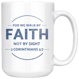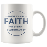 Bible Verses Dishwasher Safe White Mugs - 2 Corinthians 5:7 (Design 13)
