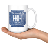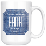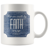 Bible Verses Dishwasher Safe White Mugs - 2 Corinthians 5:7 (Design 15)