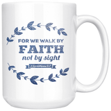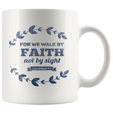 Bible Verses Dishwasher Safe White Mugs - 2 Corinthians 5:7 (Design 17)