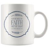 Bible Verses Dishwasher Safe White Mugs - 2 Corinthians 5:7 (Design 18)