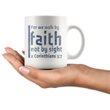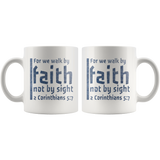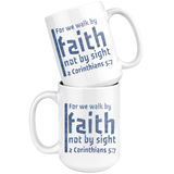 Bible Verses Dishwasher Safe White Mugs - 2 Corinthians 5:7 (Design 19)