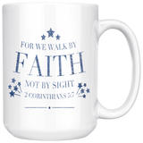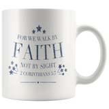 Bible Verses Dishwasher Safe White Mugs - 2 Corinthians 5:7 (Design 20)