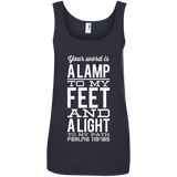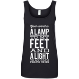 Bible Verse Ladies' 100% Ringspun Cotton Tank Top - Your Word Is Light To My Path ~Psalm 119:105~ Design 4 (White Font)