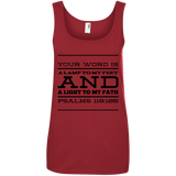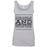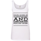 Bible Verses Ladies' 100% Ringspun Cotton Tank Top - Your Word Is Light To My Path ~Psalm 119:105~ Design 11 (Black Font)