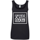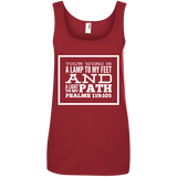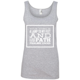 Bible Verses Ladies' 100% Ringspun Cotton Tank Top - Your Word Is Light To My Path ~Psalm 119:105~ Design 13 (White Font)