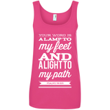 Bible Verses Ladies' 100% Ringspun Cotton Tank Top - Your Word Is Light To My Path ~Psalm 119:105~ Design 15 (White Font)