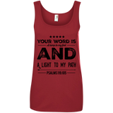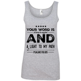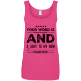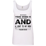 Bible Verses Ladies' 100% Ringspun Cotton Tank Top - Your Word Is Light To My Path ~Psalm 119:105~ Design 16 (Black Font)