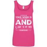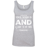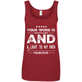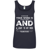 Bible Verses Ladies' 100% Ringspun Cotton Tank Top - Your Word Is Light To My Path ~Psalm 119:105~ Design 16 (White Font)