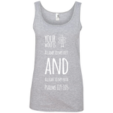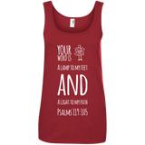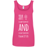 Bible Verses Ladies' 100% Ringspun Cotton Tank Top - Your Word Is Light To My Path ~Psalm 119:105~ Design 19 (White Font)