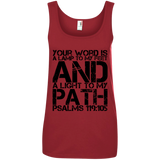 Bible Verses Ladies' 100% Ringspun Cotton Tank Top - Your Word Is Light To My Path ~Psalm 119:105~ Design 7 (Black Font)
