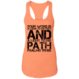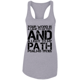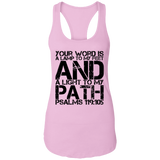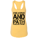 Bible Verses Ladies Ideal Racerback Tank - Your Word Is Light To My Path ~Psalm 119:105~ Design 7 (Black Font)