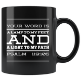 Bible Verses Dishwasher Safe Black Mugs - Psalm 119:105 (Design 11)