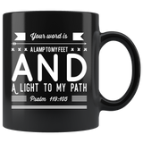 Bible Verses Dishwasher Safe Black Mugs - Psalm 119:105 (Design 14)