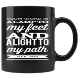 Bible Verses Dishwasher Safe Black Mugs - Psalm 119:105 (Design 15)