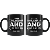 Bible Verses Dishwasher Safe Black Mugs - Psalm 119:105 (Design 16)