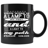Bible Verses Dishwasher Safe Black Mugs - Psalm 119:105 (Design 17)