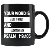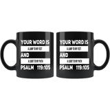 Bible Verses Dishwasher Safe Black Mugs - Psalm 119:105 (Design 21)