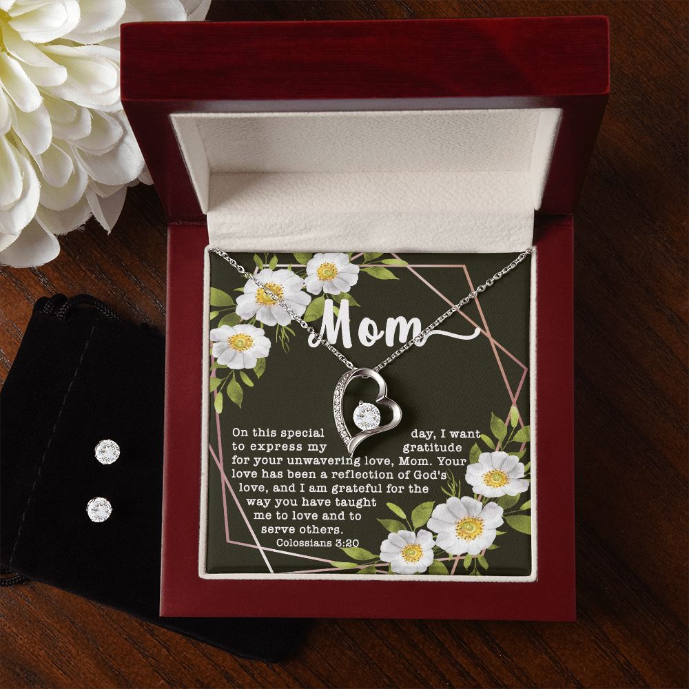 On this special day, I want to express my gratitude for your unwavering love, Mom. Your love has been a reflection of God's love, and I am grateful for the way you have taught me to love and to serve others. Colossians 3:20