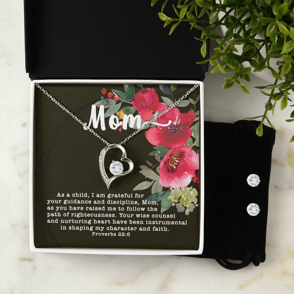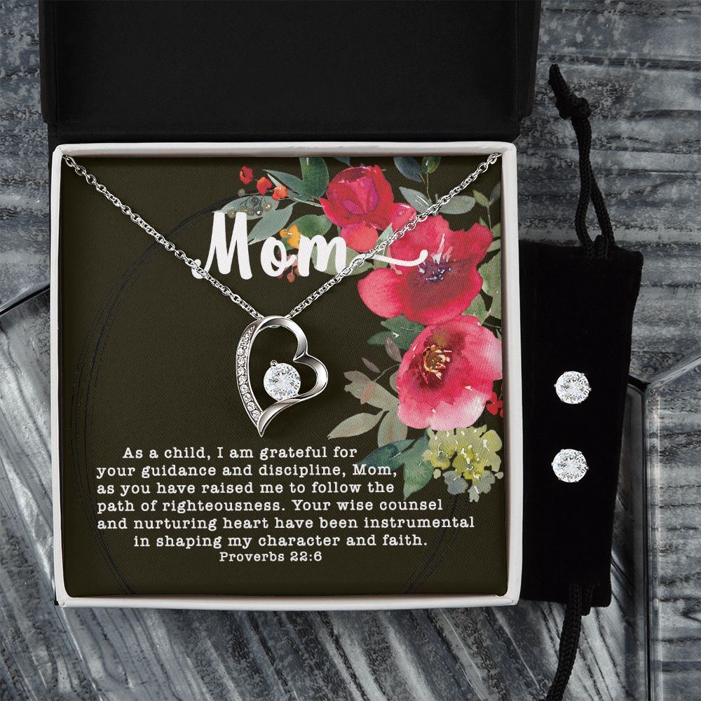 Forever Love CZ Crystal 14K White Gold Finish Necklace & Earring ~Proverbs 22:6~
