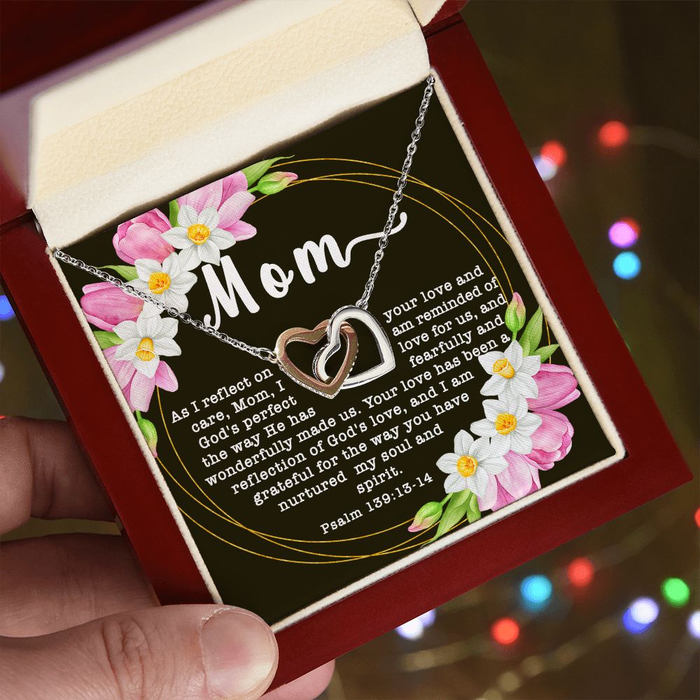Interlocking Hearts CZ Crystal Rose/18K Gold Finish Necklace ~Psalm 139:13-14~