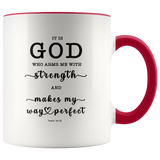 Typography Dishwasher Safe Accent Mugs - God Who Arms Me With Strength ~Psalm 18:32~