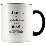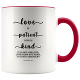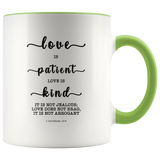 Typography Dishwasher Safe Accent Mugs - Love Is Patient Love Is Kind ~1 Corinthians 13:4~