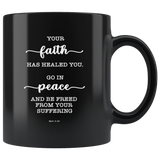 Typography Dishwasher Safe Black Mugs - Be Healed of Affliction ~Mark 5:34~