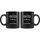 Typography Dishwasher Safe Black Mugs - For With God Nothing Will Be Impossible ~Luke 1:37~