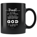 Typography Dishwasher Safe Black Mugs - God Is A Refuge For Us ~Psalm 62:8~