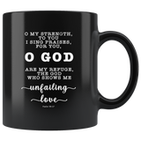 Typography Dishwasher Safe Black Mugs - God Is My Defense, My God Of Mercy ~Psalm 59:17~