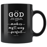 Typography Dishwasher Safe Black Mugs - God Is My Strength & Power ~2 Samuel 22:33~