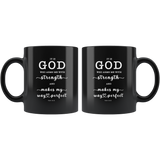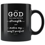 Typography Dishwasher Safe Black Mugs - God Who Arms Me With Strength ~Psalm 18:32~