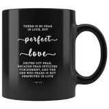 Typography Dishwasher Safe Black Mugs - Perfect Love Expels Fear ~1 John 4:18~
